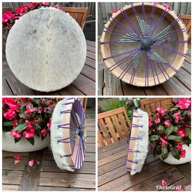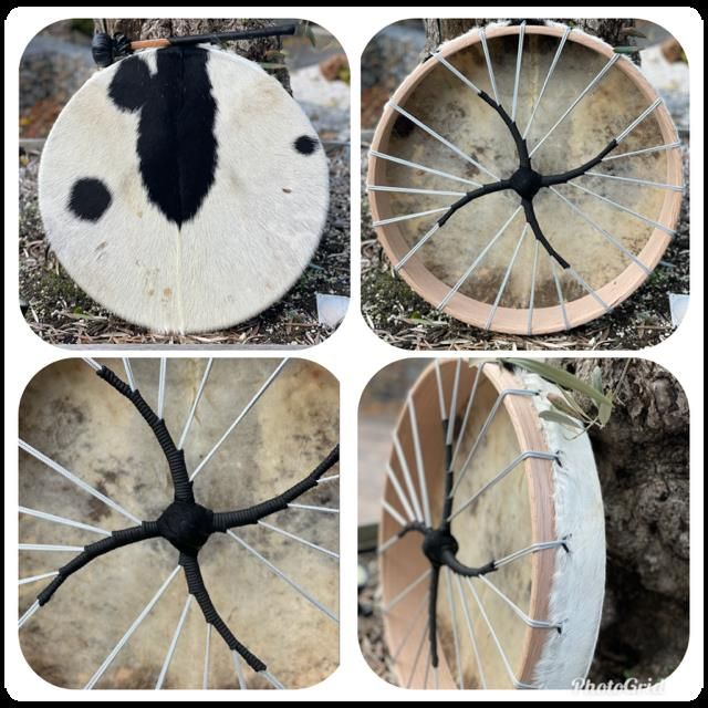 Je kunt het frame van je drum bespannen met een huid van Hert, Koe, Geit, Paard, Eland, Buffel. Alle huiden zijn al schoon en worden de avond voor de workshop in de week gelegd.